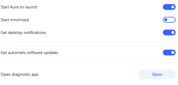 For weeks I was the good soldier. First I tried to use Linux for everything where I wouldn’t have Aura to deal with. Second, I dutifully used the diagnostic app. You can find it on a few menus, notably the Preferences menu on the left of the main dialog.