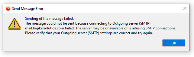 Anytime you are on a Windows computer and cannot send email from your local email application, close the email application, turn off your antivirus, wait five minutes for background tasks and caches to clear, open email client and try sending again.