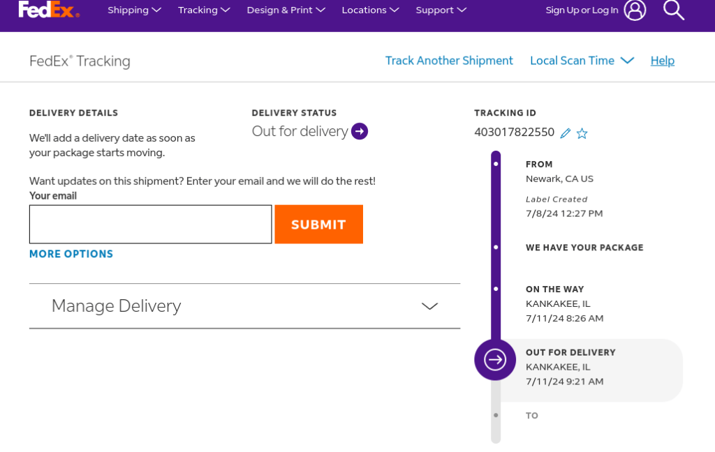 While it is probably inadvisable, I’m going to share with you the FedEx tracking link for the motherboard.
