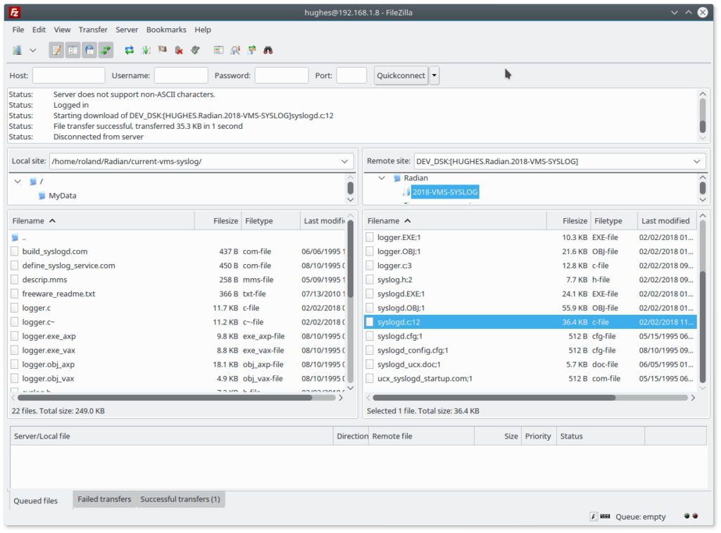 FileZilla and OpenVMS