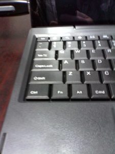 While I’m on the topic of hardware design flaws, take a look at the shift keys. On the left is a near full sized shift key exactly where it should be. On the right the shift is that little thing way over against the edge. People who are used to typing will constantly find themselves hitting the up arrow key (when they aren’t bumping the touchpad) totally hosing their document.