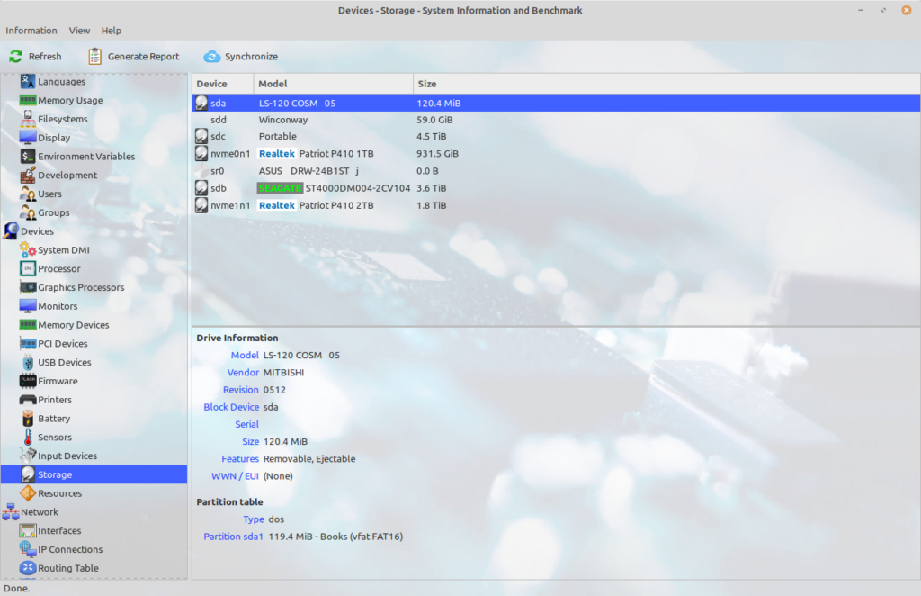 It even knows the drive is LS-120