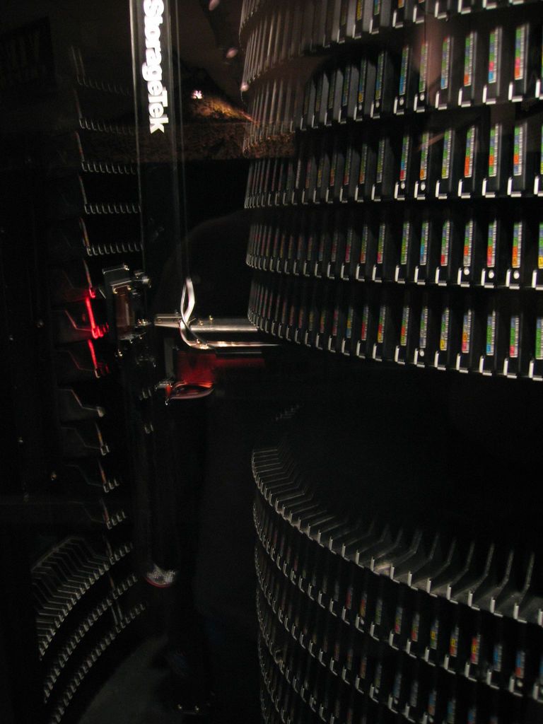 If you think these things are going away any time soon, think again. IBM can store 330TB uncompressed on a palm sized tape cartridge. Take a moment and count just how many tape cartridge slots you can see in this dark robot library picture.